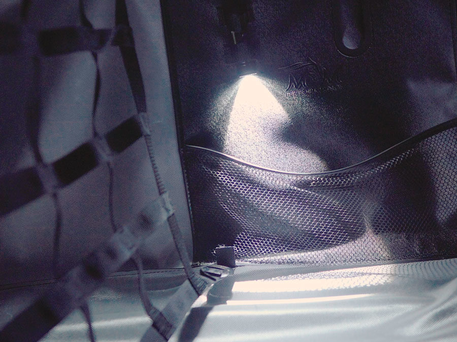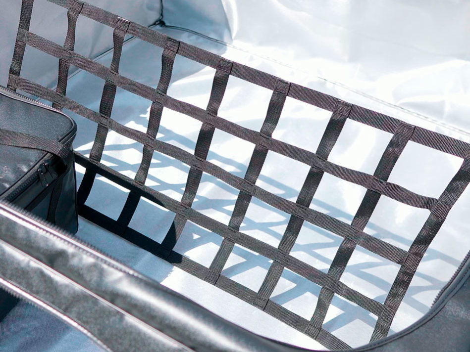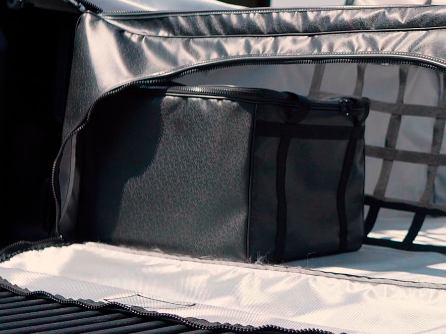 Este bolso auxiliar garante um pequeno espaço separado da carga onde suporta e evidencia pequenos objetos avulsos.
