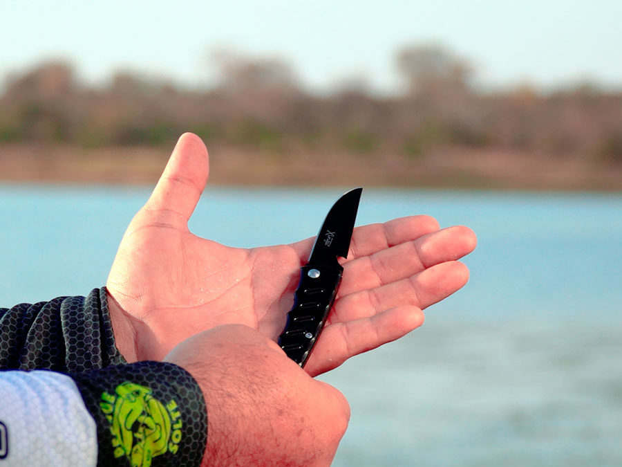Aproximadamente: 9 cm de cabo emborrachado, 7 cm de lamina. Aberto 16 cm (cabo + lamina). Acessório muito útil na lida diária com picapes.
